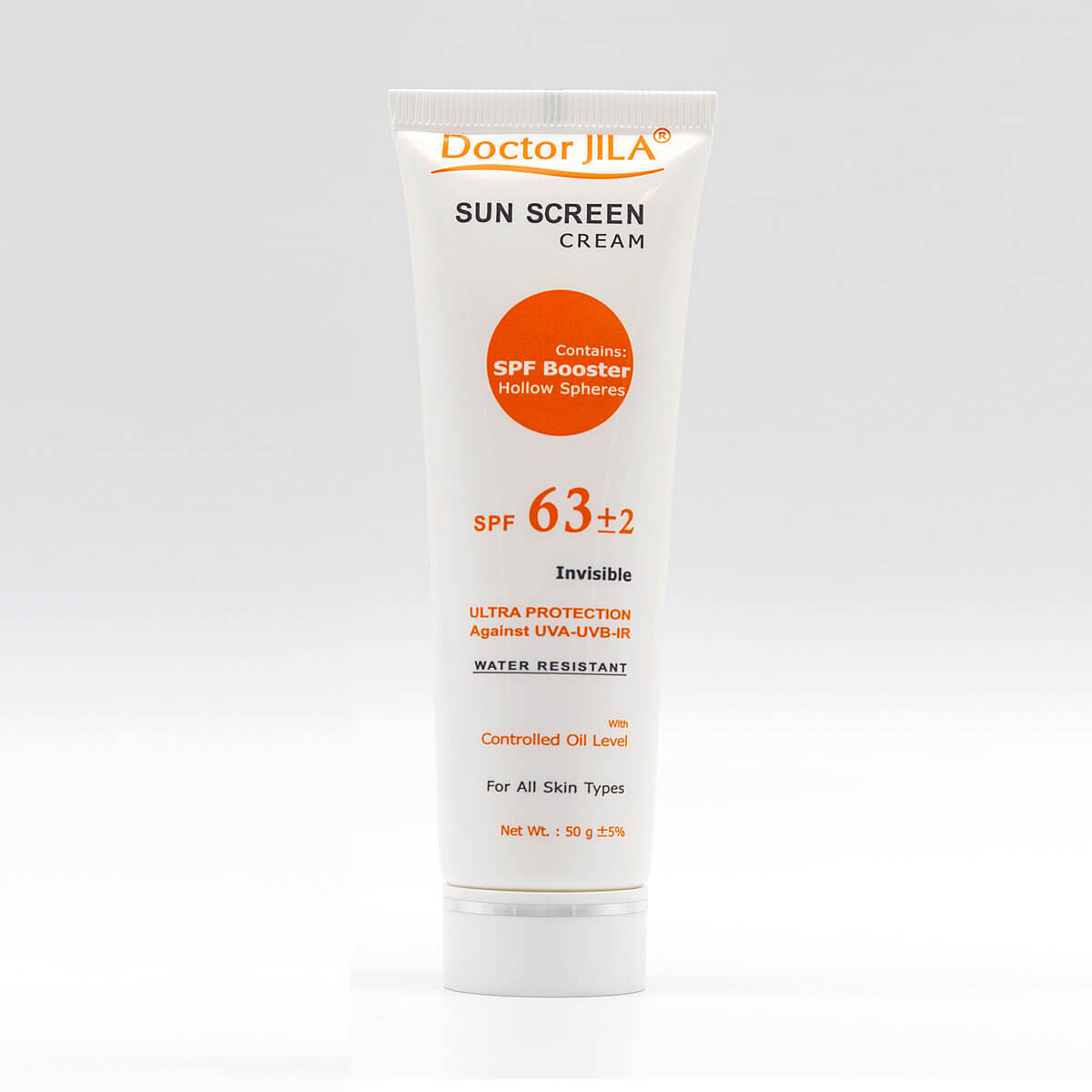 کرم ضد آفتاب دکتر ژیلا SPF63، ترکیب ویزه ای از فیلتر های فیزیکی جهت پوشانندگی بهتر،جاذب شیمیایی UVA،UVB مورد تاییدFDAو تکنولوژی جدید