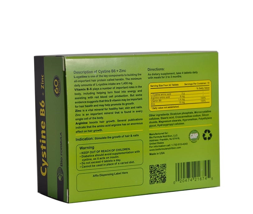 قرص سیستین B6 و زینک بایو فرمولا یک مکمل ضد ریزش مو است که با خواص آنتی اکسیدانی برای سلامت ناخن و سم زدایی بدن نیز مصرف میشود.