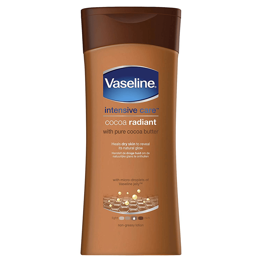 لوسیون بدن وازلین حاوی روغن کاکائو و ویتامین E. هنگامی که پوستی سالم داشته باشید، انعکاس نور از سطح زیرین پوست شما، باعث درخشنده تر شدن پوستتان می شود. اما هنگامی که پوستتان خشک است، سطح پوست ناهموار و غیر یکنواخت بوده و باعث می شود پوستتان تیره به نظر برسد. لوسین حاوی روغن کاکائو به پوست نفوذ کرده و ناهمواری های پوست را از بین می برد و منجر به احیای درخشندگی اولیه پوست می شود. از سوی دیگر، روغن کاکائو، ظاهر نقاط تیره پوست را بهبود بخشیده و به یکنواختی تناژ پوست کمک می کند. وجود مرطوب کننده در این لوسیون، باعث نرمی و صافی پوست می شود.