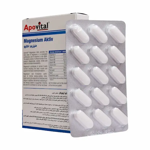 منیزیم اکتیو آپوویتال (Apovital Magnesium Active) یکی از محبوبترین مکملهای غذایی تحت لیسانس Euro OTC Pharma GmbH آلمان است که با ترکیبی منحصر بهفرد از منیزیم (بیسگلیسینات، سیترات، اکساید و لاکتات) به همراه ویتامینهای گروه B تولید میشود. این ترکیب باعث میشود جذب منیزیم بالاتر رفته و تاثیرگذاری آن در بدن بیشتر شود.