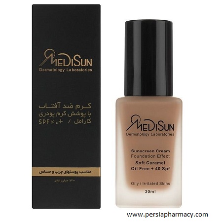 ضد آفتاب کرم پودری پوست های چرب و حساس اس پی اف ۴۰ مدیسان، حاوی تی تری خاصیت آنتی باکتریال، ضد التهاب و ضد آکنه قوی دارد. و بر روی طیف وسیعی از قارچها و باکتریها اثر گذار است. همچنین اشعه های UVB و UVA را فیلتر میکند. این محصول نیاز افراد به ضد آفتاب و کرم پودر را مرتفع میکند و به افردی که پس از استفاده از ضد آفتاب رنگی (Teinted) به پوشش دلخواه نمیرسند توصیه میشود. کرم پودر مدیسان با داشتن عوامل آنتی باکتریال و ضد التهابی مناسب پوست های چرب و جوشدار است. ضد آفتاب کرم پودری مدیسان دارای سه رنگ بژ خیلی روشن، بژ روشن و بژ طبیعی میباشد که با پوشش بالا میتواند انواع ناهماهنگی های پوستی را پوشش دهد. ضد آفتاب مدیسان SPF 40 با داشتن فیلتر های فیزیکی و شیمیایی از پوست در برابر اشعه های UVA و UVB محافظت میکند.