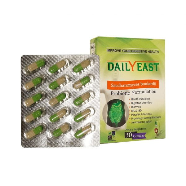 فلور میکروبی و پروبیوتیک ها : در دستگاه گوارش انسان میکروارگانیسم های فراوانی وجود دارند که بیشتر آن ها مفید هستند و فلور میکروبی نامیده می شوند . این میکروارگانیسم ها در حفظ توازن دستگاه گوارش و تقویت سیستم ایمنی بدن نقش موثری دارند . فلور میکروبی بدن تحت تاثیر عوامل متعددی دچار دگرگونی و عدم تعادل می شود . این عوامل شامل تغییرات رژیم غذایی ، افزایش سن ، مسافرت ، استرس و فشارهای روانی ، انواع بیماری ها و مصرف داروهای مختلف بخصوص آنتی بیوتیک ها می باشد و باعث پدید آمدن اختلالات گوارشی ( مانند اسهال ، یبوست ، علائم سوء هاضمه و … ) و مشکلات ناشی از برهم خوردن سیستم ایمنی ( مانند آلرژی ، اگزما ) می گردد . پروبیوتیک ها میکروارگانیسم های سودمند دستگاه گوارش هستند . مصرف مکمل های پروبیوتیکی ، با کمک به بازسازی فلور میکروبی دستگاه گوارش اثرات محافظتی متعددی را در بدن اعمال می کند و سبب پیشگیری و بهبود این مشکلات می گردد . مخمر ساکارومایسس بولاردی سال هاست به عنوان پروبیوتیک در سراسر جهان استفاده می شود و دارای خواص سلامت بخش و درمانی اثبات شده فراوانی است. کپسول دیلیست چیست ؟ کپسول Dailyeast حاوی ۲۵۰ میلی گرم مخمر فعال ساکارومایسس بولاردی معادل ( ۱۰.۰۰۰.۰۰۰.۰۰۰ واحد تشکیل دهنده کلونی ( cfu ) ) و ساخت شرکت زیست تخمیر است . کپسول دیلیست منبع غنی ویتامین های گروه B ، مواد معدنی کمیاب از جمله سلنیوم و کروم ، آنتی اکسیدان ، نوکلئیک اسید ، نوکلئوزید و اسیدهای آمینه ضروری با قابلیت جذب بالا می باشد . اثرات مفید و سلامت بخش دیلیست : ۱- فعالیت ضد میکروبی : – مهار رشد باکتری های بیماری زای روده ای مانند اشریشیاکلای ، کلبسیلا ، سالمونلا تیفی و همچنین قارچ کاندیدا آلبیکنز – تقویت اتصالات بین سلولی سلول های روده و کاهش میزان نفوذپذیری مخاط روده به پاتوژن های روده ای ( میکروب های مضر ) – کاهش میزان آسیب به سلول های روده ای – رقابت با پاتوژن ها بر سر جایگاه اتصال و مواد غذایی در روده – کاهش کلونیزاسیون پاتوژن ها در روده ۲- اثرات ضد سم ( آنتی توکسین ) : – تخریب مستقیم سموم باکتری ها – مهار نواحی اتصال گیرنده های سموم – تحریک تولید آنتی بادی بر علیه سم کلستریدیوم دیفیسیل ۳- اثر بر سیستم ایمنی : – تنظیم پاسخ های ایمنی در جهت تحریک سیستم ایمنی بدون تشدید التهاب – تحریک فعالسازی کمپلمان و مهاجرت مونوسیت ها و گرانولوسیت ها برای مقابله با پاتوژن ها – افزایش میزان ترشح ایمنوگلوبولین A در روده ( دارای اثرات ضد میکروبی بارز ) – افزایش مقدار سرمی ایمنوگلوبولین G در پاسخ به سم کلستریدیوم دیفیسیل – کاهش تولید سایتوکاین ها و آنزیم های التهابی – افزایش تولید سایتوکاین ها ۴- سایر اثرات : – افزایش تولید اسیدهای چرب کوتاه زنجیر ( SCFA ) که اثرات بسیار مفیدی در بهبود گوارش و تقویت سیستم ایمنی دارند . – کاهش التهاب مخاطی ( موکوزیت ) – تحریک تولید انرژی و پروتئین ها و بهبود متابولیسم بدن – کمک به بلوغ سلول های روده و تقویت آنزیم های گوارشی – کاهش جذب کلسترول و چربی های مضر – کاهش پیشرفت سلول های سرطانی در دستگاه گوارش ویژگی های ساکارومایسس بولاردی : – قابلیت زنده ماندن تا رسیدن به ارگان هدف ( روده ها ) – قابلیت زنده ماندن در دمای بدن ( ۳۷ درجه ) – مقاومت به اسید معده و اسیدهای صفراوی – مقاومت به آنتی بیوتیک ها