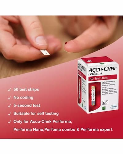 نوار تست قند خون اکیو چک پرفورما ۵۰ عددی ( Accu-Chek Performa 50 Test Strips)، توسط شرکت «آکیو چک» (Accu Chek) و شرکت مراقبت های دیابت رش آلمان تولید می گردد. تعداد نوارهای موجود در بسته بندی، ۵۰ عدد می باشد.