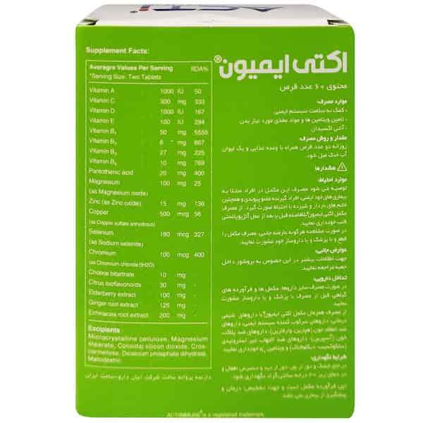 - قرص اکتی ایمیون یک مکمل است و برای درمان و پیشگیری از بیماری نمی باشد.