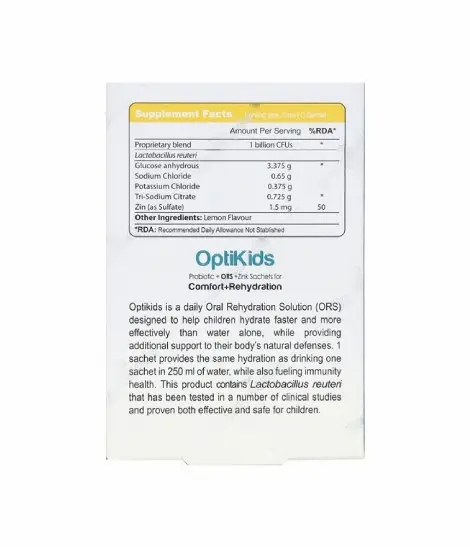 پودر او آر اس ORS اپتی کیدز، علاوه بر کمک به حفظ آب و توازن الکترولیت ها در بدن، به واسطه وجود لاکتوباسیلوس روتری سبب بازسازی سریع باکتریهای مفید روده می گردد.